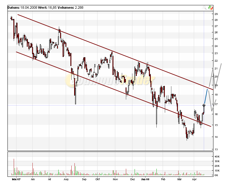 Toni April 29, 2008 Weis jemand den grund fur diesen Einbruch Ganz einfach: Abpraller am nach wie vor intakten Abwärtstrend: Siehe auch meine vorherigen Postings zum Thema Charttechnik. Diesen Beitrag teilen Link zum Beitrag