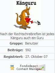 postguru Juli 3, 2011 Hey nehmt das nicht alle so ernst. Meine Anmerkungen waren eher spaßig gemeint. Man wächst mit den Aufgaben. Die Fonds liefern nun mal nur Kurse in CHF und CZK. Die einzige Kursquelle für diese Exoten war Flatex und die stellen nur Kurse in der Originalwährung so what. Onvista liefert die Devisenkurse, Flatex die Fondskurse und schon ist alles in Butter. Mensch Bärenbulle (du Longie), wie konnte ich dich vergessen (und die anderen auch) Ich habe hier wie doof Benchmarkepots zusammengedengelt und übersehen, dass ich nicht mit der ultimativ letzten Liste von Ghost gearbeitet habe. Wird alles nachgeliefert. Vielleicht bekommen wird dann ja auch noch die Benchmark "beliebteste Fonds" zusammen Diesen Beitrag teilen Link zum Beitrag
