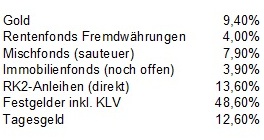 ceekay74 Dezember 29, 2012 · bearbeitet Dezember 29, 2012 von ceekay74 Ich übernehme vanitys Unsitte und poste den Jahresendstand meines Kinderdepots und einige weitere Anmerkungen in diesem Thread, da die RK2-Anleihen dieses Jahr im Mittelpunkt meiner Neuanlagen standen. Wem es wuarscht ist was ich poste, der mag bitte einfach kommentarlos darüber hinwegsehen. Insgesamt bin ich mit meinem Einstieg in die Anleihenwelt und meiner Lernkurve sehr zufrieden. Zugegebenermaßen war es auch nahezu unmöglich, in Summe mit Minusgeld vom Tisch zu gehen und ein Zeitraum von nur fünf Monaten mit Echtgeld ist nicht einmal ansatzweise repräsentativ. Der diesjährige Rohrkrepierer in meiner Asset Allokation waren Gold und Silber, die es in Summe nur auf 3,0% Rendite nach Steuer brachten. Die Rendite über das Gesamtvermögen betrug trotz sehr verfrühtem Market Timing im Weltdepot relativ grob ermittelte 4,64% nach Steuer und damit deutlich mehr als die von mir anvisierten 1-2% real nach Steuer. Diesen Beitrag teilen Link zum Beitrag