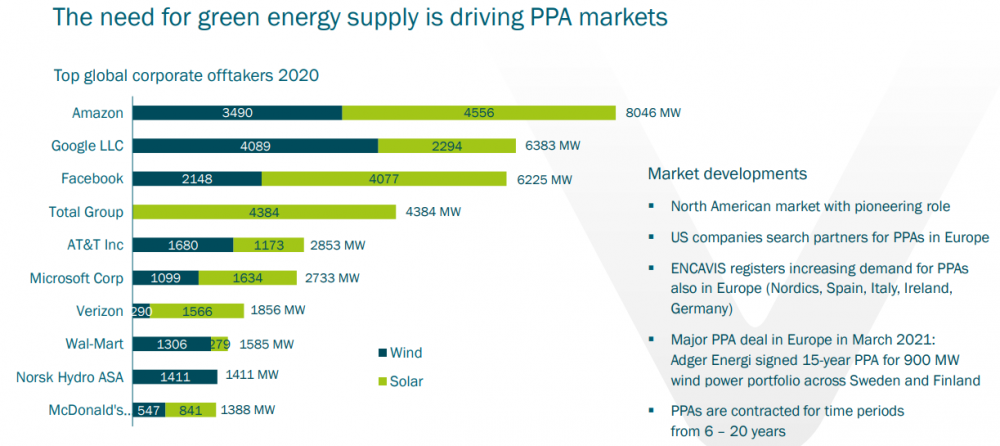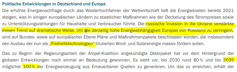 Die Perspektiven sehen ja entsprechend gut aus, dass es so weiter geht. In dem Video oben legt der CEO auch dar, dass zB Amazon bei dem Hub in Spanien die interne Auflage hatte, Strom aus 100% renewables zu beziehen.