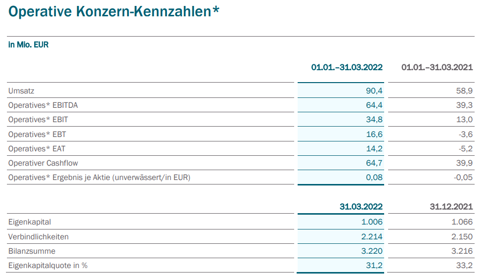 Insgesamt resultiert daraus ein signifikant verbessertes, operatives Ergebnis je Aktie (EPS) von mindestens EUR 0,58 für das Geschäftsjahr 2022, womit die Guidance 2022 in Höhe von EUR 0,55 um mehr als 5% übertroffen wird – eine Steigerung um mindestens 20% gegenüber dem Vorjahreswert von EUR 0,48 je Aktie.