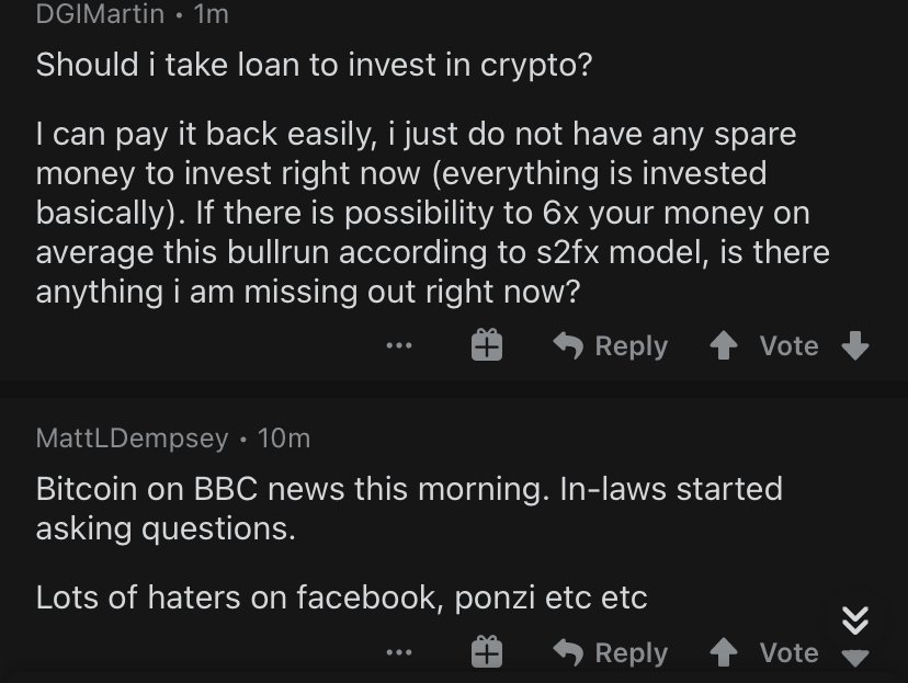 Doomer Januar 3, 2021 vor einer Stunde von Depoley: Habe gestern abend die 10% korrektur mit erlebt (whale triggert). Google trends hin oder her...da sind mittlerweile so viele nervöse hände drin und extrem viel FOMO - schön an der unrealen steigerung ohne testen des supports zu sehen - Eine dicke Nadel und das Ding platzt. Da HODL keiner, ausser er hat den ausstieg verpasst und nicht vor den Zug geworfen ;). Ist nur ein „wer zuckt zuerst“ spiel. Gut für die BTC whales. Wer drin ist, dynamic stop loos aber einsteigen würde ich da nicht mehr. Aber ist halt schwer wenn die ganzen glückspielsuchtis auf den chart schauen. Aber nee ist ja das neue Gold und die Regierung kauft mit etc :D. Die beiträge in reddit & co. werden immer absurder. wir sind mitten im endgame. Dann verkauf doch. Diesen Beitrag teilen Link zum Beitrag