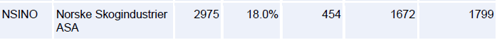 WOVA1 Juli 28, 2011 Laut Anleihenfinder der Börse STU: WKN Zins Emittent Fälligkeit Rendite Kurs Whrg. Rating A0NYJ9 7,000% Norske Skogindustrier 26.06.2017 14,55 71,35 G EUR B- A1GSKQ 11,750% Norske Skogindustrier 15.06.2016 15,04 89,10 G EUR B- ?? Leicht inverse Zinsstruktur ?? Letzter Anleihe aber mit doppelter Kindersicherung . Diesen Beitrag teilen Link zum Beitrag