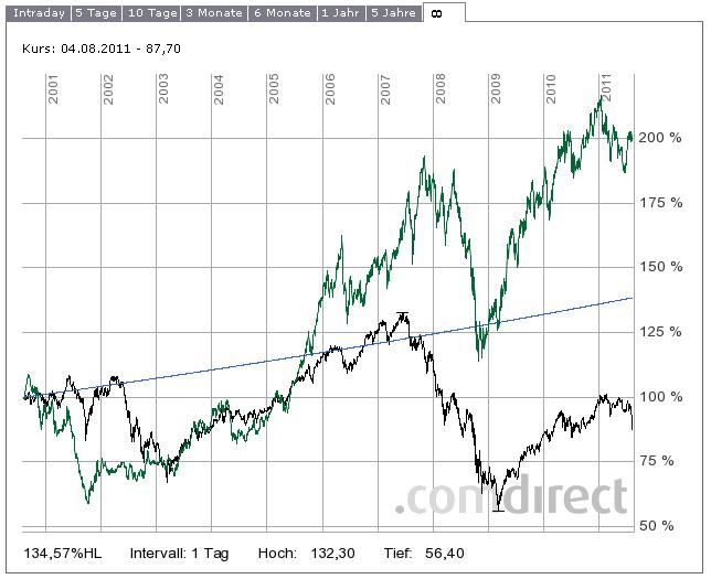 Apophis August 5, 2011 Anlageziele Anlagedauer Risikobereitschaft Ich erinnere an meinen ersten Post. bevor die Fragen nicht beantwortet sind braucht man sich über die Anlageform keine Gedanken zu machen. In Anbetracht der Kursverluste die letzte Woche und der umgreifenden Panik braucht man schon gewisse Nerven und Wissen, nicht auch in Panik zu verfallen (ich habe gerade nachgekauft und somit rebalanced). Da ich das irgendwie bei euch nicht sehen kann, wäre Festverzinsliches wohl angebracht. Ich hab so gut wie alles glatt gestellt, 2008 lässt grüssen. So unterschiedlich ist das. Diesen Beitrag teilen Link zum Beitrag