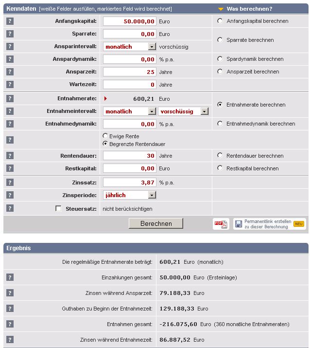 Helmut12343 August 26, 2011 · bearbeitet August 26, 2011 von Helmut12343 Lt. einem Rentenversicherungsrechner im Internet bekommt man wenn man mit 35 Jahren 50.000 Euroin eine private Rentenversicherung einzalt mit 60 Jahren mtl. 600.00 Euro Rente. Kann das denn sein? Ist das nicht zuviel? Diesen Beitrag teilen Link zum Beitrag