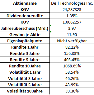 herbert_21 September 1, 2023 · bearbeitet September 1, 2023 von herbert_21 Dell schlägt die Erwartungen deutlich. Die Aktie steht vorbörslich bei 62$ und damit 10% höher als gestern. Zitat Dell $DELL soared 8.5% in recent premarket trading after the company said adjusted EPS totaled $1.74, smashing the $1.14 estimate, on revenue of $22.93 billion that topped the $20.86B target, as a jump in in service and software maintenance agreements boosted growth. Recurring revenue rose 8% to $5.6B year-over-year in Q2, driven by "increases in service and software maintenance agreement," the company said. | Yahoo Finance / Investing.com Fri, September 1, 2023 Bewertung Dass Dell ein P/E von knapp über 20 hat, wusste ich aus der Supermicro Analyse. Dass das Forward P/E basierend auf den bei Yahoo Finance noch nicht aktualisierten Zahlen bei 10 liegt, war mir neu. Für einen gut verwalteten Stalwart scheint mir das nicht zu viel, die Analysten werden wohl heute ihre Ratings und EPS Estimates nach oben ziehen. Diesen Beitrag teilen Link zum Beitrag