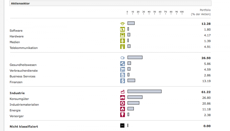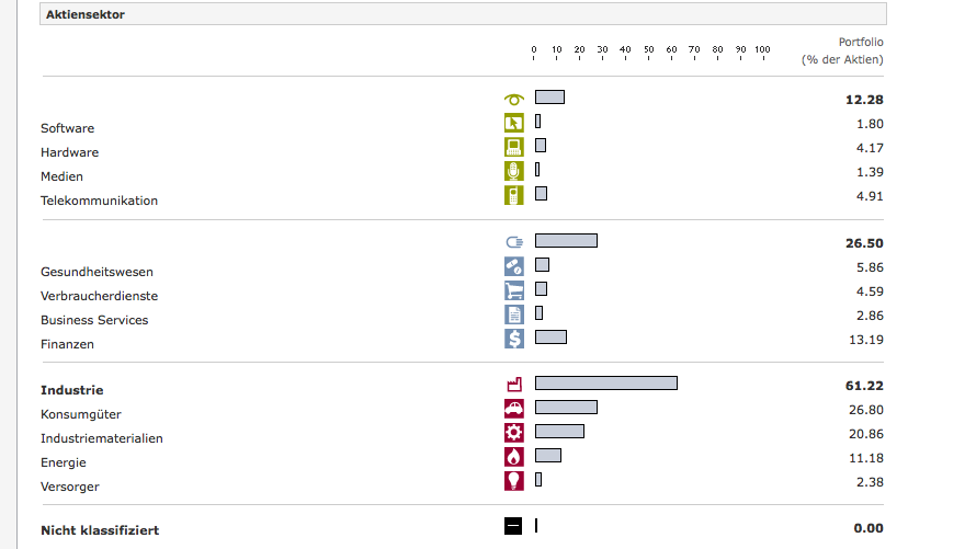 jackymattes Dezember 28, 2011 So, ich habe jetzt mal ein Musterdepot durch Instant X-Ray gejagt. Die Gewichtung sieht wie folgt aus: 45% iShares MSCI World Inc (DE) (EUR) 20% M&G Global Basics A EUR Acc 20% iShares MSCI Emerging Markets (ACC) (DE) (EUR) 15% ComStage ETF STOXX Europe 600 Food & Beverage NR (EUR) Fonds (OE) Hier die Ergebnisse: Regionen Anlagestil Sektor Kennzahlen Asien ist natürlich stark vertreten, ist ja auch in drei der vier Fonds enthalten. Der Sektor Industrie ist stark übergewichtet, was auch nicht überraschend ist. Im M&G sind die Rohstoffe enthalten und der Food & Beverage deckt natürlich nur diese Branche ab. Was haltet ihr davon? Ist Asien vielleicht etwas zu viel enthalten? Das Übergewicht im Industriezweig finde ich persönlich nicht so schlimm, ist ja durch den Branchenfonds auch mehr oder weniger gewollt. Achja, mit den Aktienkennzahlen kann ich mal rein gar nix anfangen... Sind die jetzt gut oder eher nicht so? Diesen Beitrag teilen Link zum Beitrag