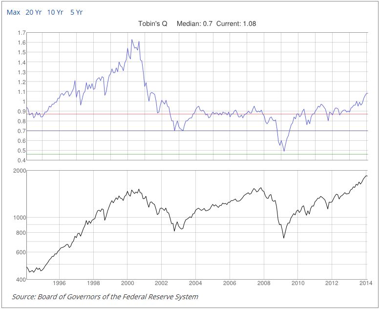 Tobins Q liegt nur knapp über 1 und das auch erst seit kurzem (auch hier siehe das Bild zum Verlauf der letzten 20 Jahre). Bei KUV wird mir eher schlecht, denn das war eine beliebte Bewertungsgröße am neuen Markt. Desto mehr Umsatz desto besser, Gewinne Fehlanzeige, mit der rechne ich normalerweise gar nicht. Hohe Margen kann ich jetzt eigentlich nicht schlimm finden, niedrige Fremdkapitalkosten allenfalls wenn sie mit hohem Fremdkapitaleinsatz kombiniert sind. Welche Bedeutung ich einer Marktkapitalsierung im Vergleich zum BIP geben soll ist mir offen gestanden nicht klar, kannst Du vielleicht noch mal erläutern.