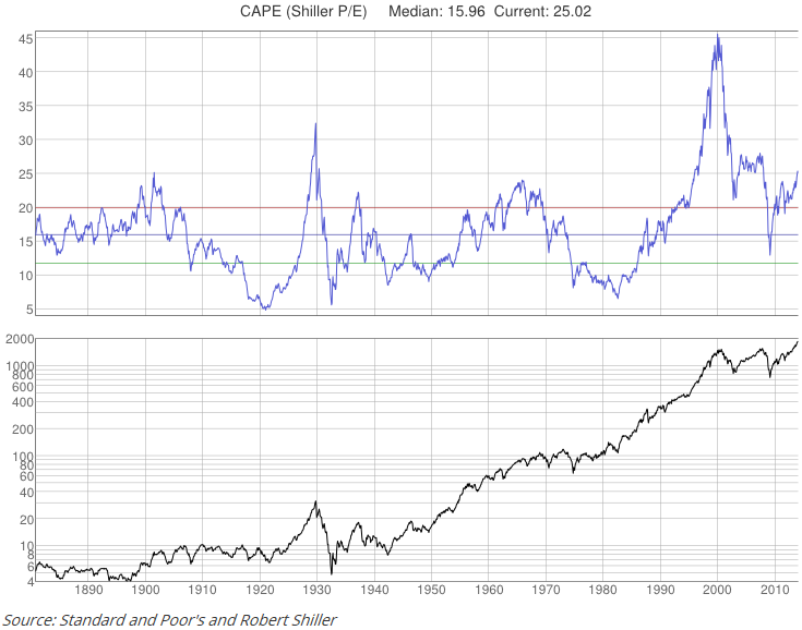 Neben dem 10 jährigen Durchschnitts-KGV sind die meisten Werte ober- bzw. unterhalb der Durchschnittswerte. Ein hohes KUV, ein Reproduktionswert (Tobins Q) über 1, die niedrige Dividendenrendite, die hohe Marktkap. zum BIP (auch wenn der Auslandshandelsanteil stetig zunimmt), die hohen Margen oder die niedrigen Fremdkapitalkosten.