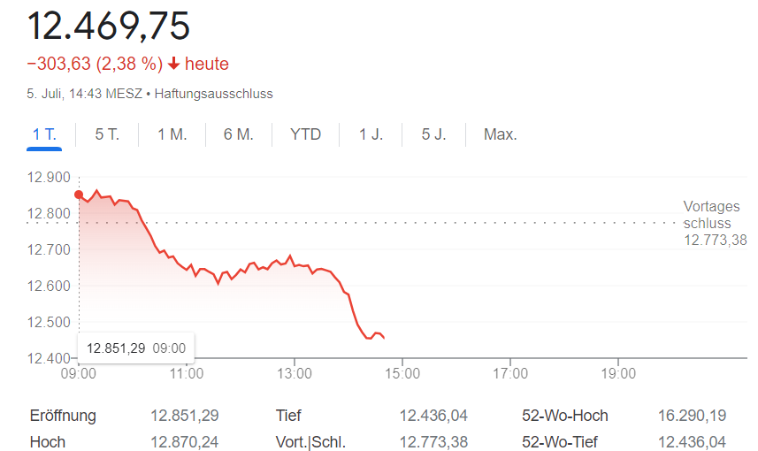 Oder auf 1 Monats-Sicht ein Minus von 12,31%