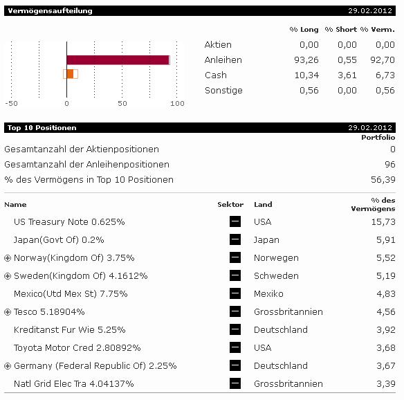 Karl Squell Juni 30, 2012 Der Fonds klingt sehr interessant, da es kein "klassischer" Rentenfonds ist, sondern sehr flexibel sein kann. Wie ist denn so die allgemeine Einschätzung solch eines Fonds? Grundsätzlich mag ich es, wenn ein Manager flexibel sein kann. Natürlich kann er sich falsch entscheiden, aber in ungünstigen Situationen kann er besser reagieren, als es durch strengere Regulierung möglich wäre. Ich finde auch die Mischung aus Staats-, Unternehmens- und High Yield Anleihen ziemlich gut. Gefällt mir auch. Im letzten Jahr ist der ähnliche Templeton Global Total Return Fund jedoch besser gelaufen. Längerfristig geht der Vergleich bei Fondsweb leider nicht. Diesen Beitrag teilen Link zum Beitrag