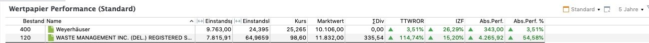 a.) Wenn ich eine Aktie am 14.8.2019 gekauft habe, dann kann ich doch nicht einfach z.B. 3 Jahre auswählen, und es wird nur "meine" Performance seit 2019 angezeigt? Welches ist die richtiger Spalte? Ich kann mit den Begriffen wie TTWOR und IZF nichts anfangen?