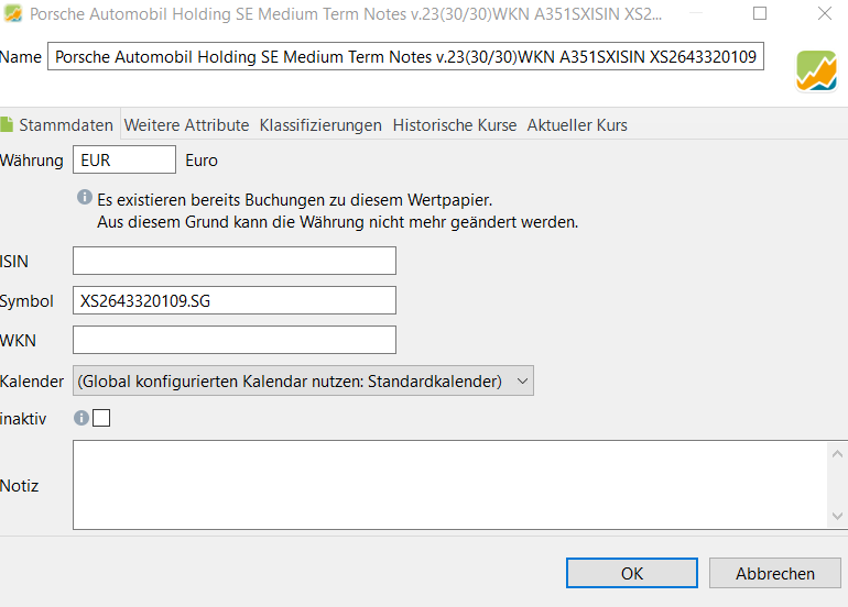 Ich habe heute mal wieder etwas mit PP experimentiert. Dabei habe ich versucht, eine Anleihe als Wertpapier einzupflegen. Genauer gesagt die Transocean 2031 Anleihe (ISIN: US893830AF64). Irgendwie bekomme ich das mit der Kursaktualisierung aber nicht hin.
