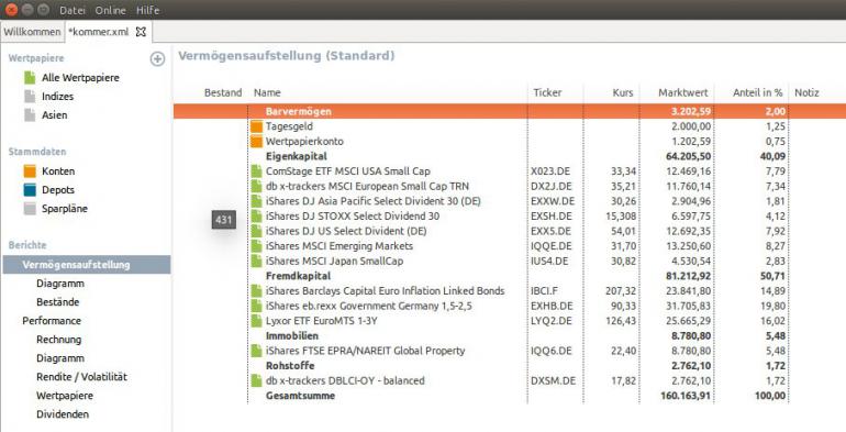 Die meisten Sachen funktionieren ganz normal (z.B: die Vermögensaufstellung und das Performance-Diagramm), aber einige wenige Seiten werden überhaupt gar nicht angezeigt, z.B.: