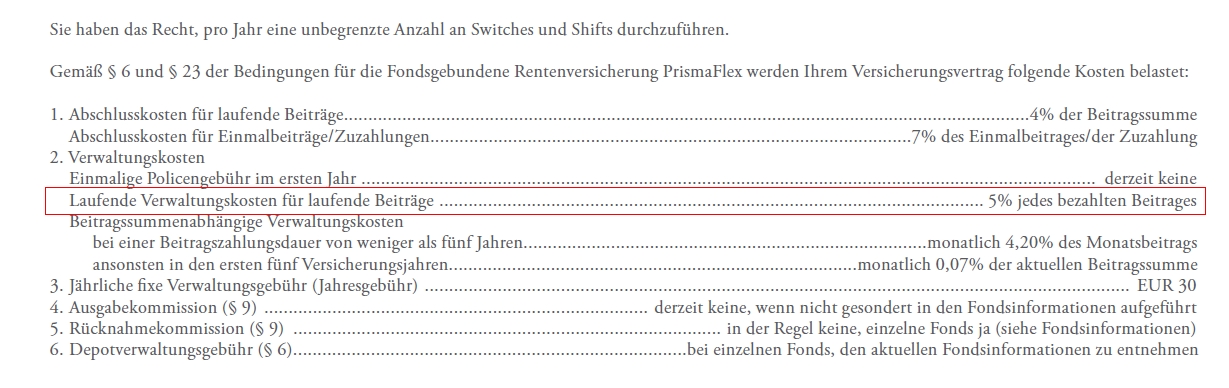 TaurusX Mai 3, 2012 · bearbeitet Mai 3, 2012 von TaurusX Tut mir leid wenn ich vllt. nicht ganz den Ton getroffen hatte, aber ich war etwas angenervt, das hier eine falsche Aussage als Fakt hingestellt wurde , obwohl man es nicht genau weiß. Bitte nicht persönlich nehmen, okay ?! Es gibt vllt. Meinungen, aber die Fakten sind eben das was zählt. Abschlußprovison ist nicht Bestandsprovision, das sind 2 getrennte paar Schuhe. Gängige Courtagetabellen von Maklerpools und Versicherern zeigen das 1-2% BP absolut üblich sind. Hier mal ein Beispiel, das während der Beitragszahlung von jedem Beitrag ! 5% einbehalten werden oder hier : Beides PrismaLife Bedingungen. Diesen Beitrag teilen Link zum Beitrag