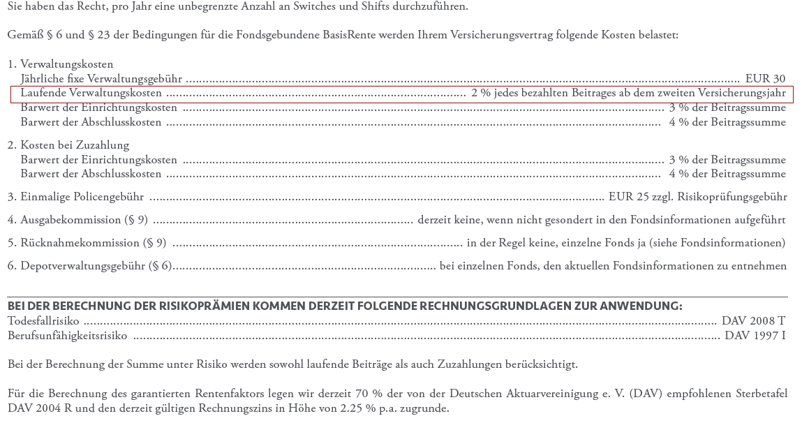 TaurusX Mai 4, 2012 · bearbeitet Mai 4, 2012 von TaurusX Tut mir leid wenn ich vllt. nicht ganz den Ton getroffen hatte, aber ich war etwas angenervt, das hier eine falsche Aussage als Fakt hingestellt wurde , obwohl man es nicht genau weiß. Bitte nicht persönlich nehmen, okay ?! Es gibt vllt. Meinungen, aber die Fakten sind eben das was zählt. Abschlußprovison ist nicht Bestandsprovision, das sind 2 getrennte paar Schuhe. Gängige Courtagetabellen von Maklerpools und Versicherern zeigen das 1-2% BP absolut üblich sind. Hier mal ein Beispiel, das während der Beitragszahlung von jedem Beitrag ! 5% einbehalten werden oder hier : Beides PrismaLife Bedingungen. bitte die Kirche im Dorf lassen. Ihre Kernthese, dass wegen der Bestandprovision des Verkäufers/Beraters/Vertreters die Rendite zwangsläufig schlechter wäre als bei einer betragsfreien Police, ist nichtsdestotrotz Humbug. Sie bestätigen ja selbst, dass Bestandsprovisionen im Bereich von lediglich 1-2% der jährlichen Beitragszahlung liegen. Bei z.B. 1200€ sprechen wir also von 12-24€ jährlich. Das ist weniger als die meisten Banken an Kontoführungsgebühren verlangen! Und nochmal: Bestands- (bzw. Folge-)Provisionen sind bei Lebensversicherungen im Gegensatz zu Sachversicherungen eher unüblich. Gruß, Dieter Keine Ahnung was sie berufslich machen, aber die Bestandprovision von vollkommen normal, weiterhin sind die Bestandsprovisionen, nur ein Teil der Kosten die bei laufenden Beiträgen abgezogen werden, dazu kommen Kosten für den Todesfallschutz, die höher sind als bei einem beitragsfreien Vertrag, da höhere Todesfallsumme. Aber gut lassen wir das. Fakt ist das die Kosten auf den laufenden Beitrag die Hauptursache sind, das die Gesamtrendite sinkt. Diesen Beitrag teilen Link zum Beitrag