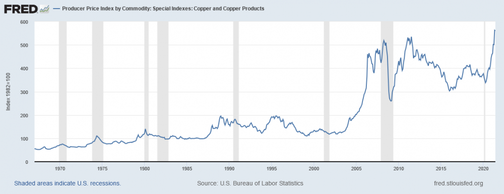 reko August 12, 2021 · bearbeitet August 12, 2021 von reko 2021/08/10 Copper price down as BHP and workers reach tentative wage deal at Escondida Am 9. 8. ist der Preis kurzzeitig auf 4,25 gefallen. Wir sind aber jetzt schon wieder über 4,40 $/lb für HG00 FED, Producer Price Index by Commodity: Special Indexes: Copper and Copper Products (WPUSI019011) Diesen Beitrag teilen Link zum Beitrag