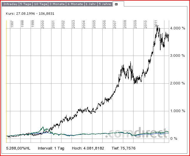 Performance von 100% Kursgewinn alle 4 Jahre. Top!