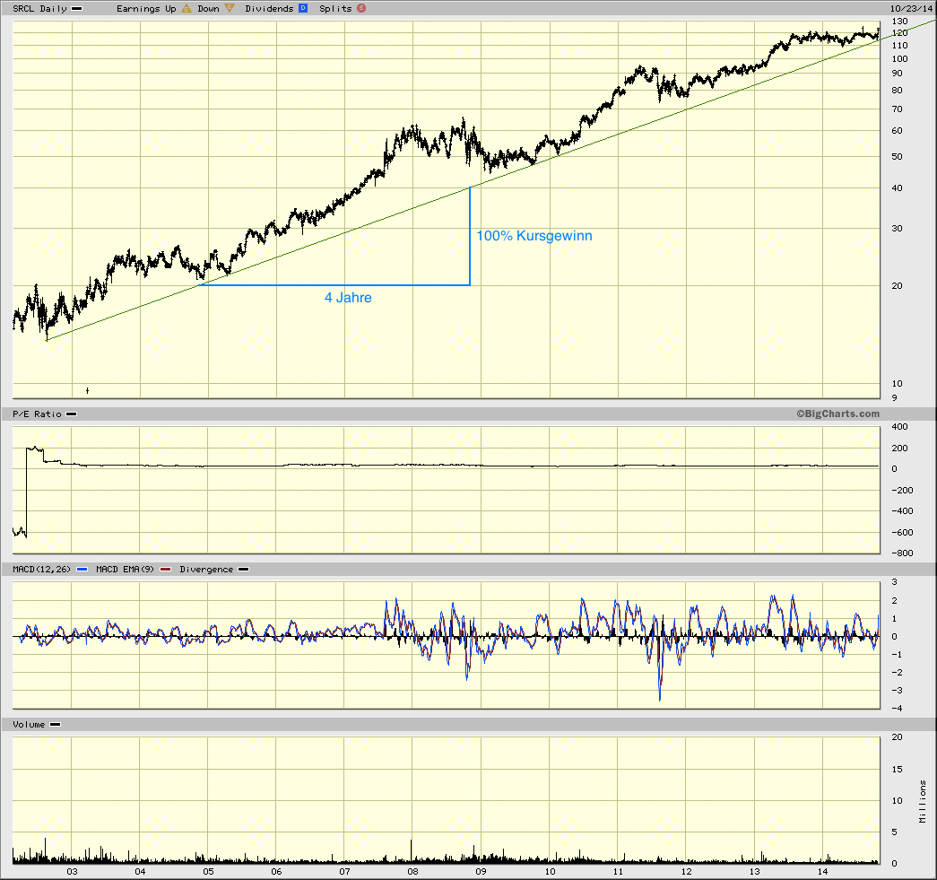 SRCL habe ich seit knappen fünf Jahren auf der Watchliste, wollte immer investieren aber konnte mich nie dazu durchringen. Letzten Endes kam mir immer etwas Interessanteres in die Quere. ;) Gutes Unternehmen, teuer, aber berechtigterweise.