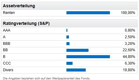 Die Fondsmittel werden überwiegend in europäischen Unternehmensanleihen niedriger Rating-Kategorien veranlagt - von BB bis CCC. Zum europäischen HighYield Markt können auch US-HighYield und Emerging Markets-Anleihen beigemischt werden.