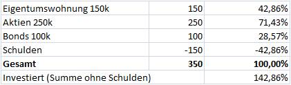 Ich habe allerdings immer noch Bauchschmerzen bei einer Summe >100% (ohne die Schulden) im Allokationsvergleich.