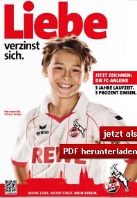 John Silver Dezember 16, 2013 Wie auch im letzten Jahr (siehe Beitrag oben), wünscht der 1. FC Köln vorbildlich(!) seinen Anleihengläubigern frohe Weihnachten. Passend dazu steht Köln auf dem ersten Tabellenplatz der zweiten Liga. http://www.bundesliga.de/de/liga2/tabelle/ Für alle Interessierten und Fans anbei die Scans zur Karte: Karten aussen 1FC-Köln_1.pdf Bild 1FC-Köln_2.pdf Anschreiben 1FC-Köln_3.pdf Diesen Beitrag teilen Link zum Beitrag