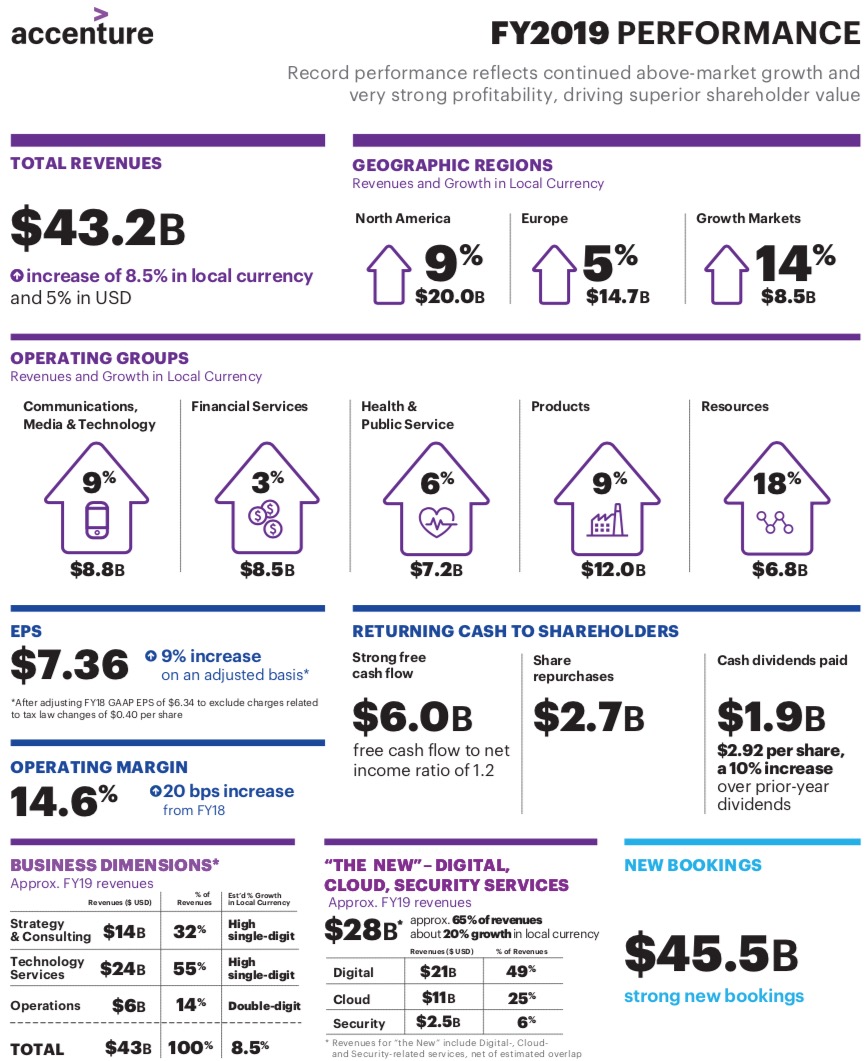 Toni September 26, 2019 · bearbeitet September 26, 2019 von Toni Accenture Reports Very Strong Fourth-Quarter and Full-Year Fiscal 2019 Results Investor Relations Info-Grafik Q4: Info-Grafik FY 2019: -------------------------------------------------------------------------------------------------------- Link Diesen Beitrag teilen Link zum Beitrag
