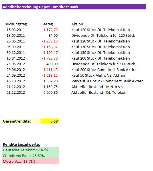 Onassis Dezember 23, 2012 · bearbeitet Dezember 23, 2012 von Onassis Das reale Onassis Dividendendepot Zum Start nur eine aktuelle Übersicht der einzelnen Aktionen und der Renditen. Ab 2013 werden alle Aktionen, Kupons etc. hier pünktlich gepostet. In der ersten Hälfte 2013 wird es nicht viel sein, in der zweiten Jahreshälfte geht es dann schneller zur Sache! In den Folgejahren sollte dann richtig die Post abgehen! Onassis Diesen Beitrag teilen Link zum Beitrag