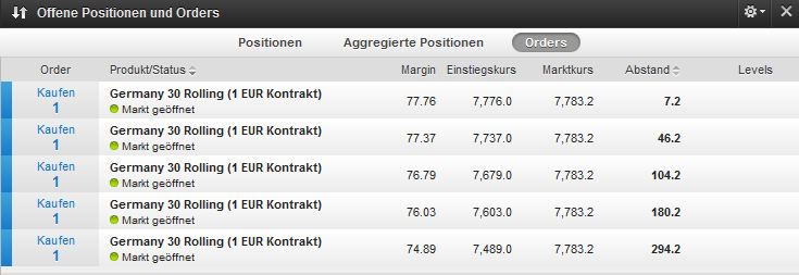 Onassis Januar 6, 2013 Eine DEMO-Spielerei für nächste Woche: Idee: Grundtendenz = long aufgrund der mittel- und langfristigen Signale, siehe ein Beitrag weiter oben. Tradingwunsch: Long einsteigen bei fallendem DAX, Einstiege gestaffelt, zuerst zum akt. Kurs, dann tiefer: -0,5%, -0,75%, -1%. 1,5% Kein SL und TP. Glattstellung der aggregierten Position zum Freitag abend. Onassis Diesen Beitrag teilen Link zum Beitrag