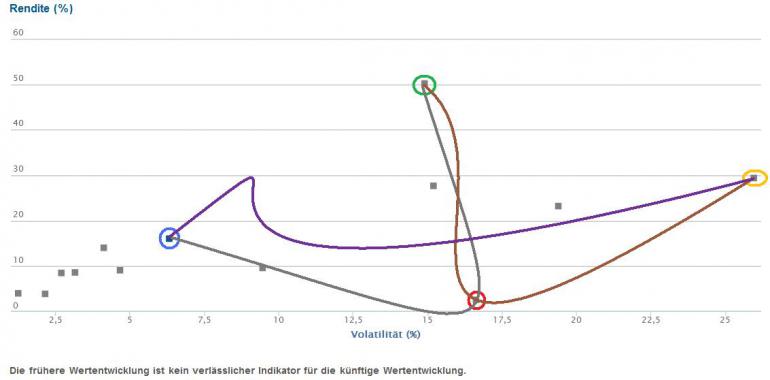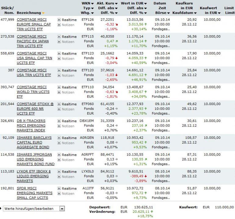 vanity Oktober 12, 2014 Na ja. Trotzdem muss das irgend so ein Lurch erst mal besser machen ... Pah, hast du vielleicht auch schwierigere Aufgaben? Etwa aus drei dutzend halbseidig vorausbezahlten Sparplänen linksdrehende Entnahmen in hyperbolischer Anordnung tätigen ohne deren Karma zu beeinträchtigen. 16,07% auf der Strecke, das sind dann p.a.-isiert so etwa 8,8562% +/-0,0001%. Das liegt daran, dass weder 2013 noch 2014 Schaltjahre waren und Silvester 2012 auch etwas unglücklich zu liegen kam. Das Ergebnis liegt nur knapp unter dem ATH vom 08.09.2014 (16,71%), gans im Gegensatz zum hasenßchartigen Q3 von Bonavista. Einfach mal das Auswertetool wechseln, dann wird das schon. Interessant ist natürlich auch die Multi-Fake-Analyse dieser bemerkenswerten Leistung a-) Gut MSCI USA (grüner Kringel) Schlecht MSCI EM (roter Kringel) c-) Schwankend MSCI Japan (gelber Kringel) d-) Stabil Gesamtportfolio (blauer Kringel) e-) Links davon MSCI Rentiere (ohne Kringel) Ein paar Effizienzlinien sind auch eingezeichnet, deren Interpretation jeder unschwer selbst vornehmen kann. Abschließend sei noch darauf hingewiesen, dass die frühere Effizienz kein verlässlicher Indikator für die künftige Effizienz ist. Auch ausbalanciert nicht. Diesen Beitrag teilen Link zum Beitrag