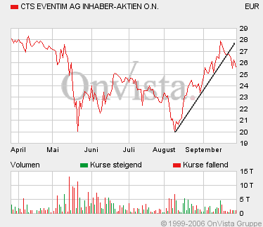 Reigning Lorelai Februar 2, 2007 ach was für eine tolle Aktie. Diese Woche um fast 11% zugelegt ohne Nachrichten. damit haben wir ein neues ATH... Das Volumen war auch sehr gut. Herz was willst du mehr vor dem Super-Bowl Wochenende?? Die einzige Nachricht die ich mir erklären könnte wäre, daß die Trembland Capital Group (USA) mittlerweile 3,21% an CTS Eventim hält. Aber ist ja egal. Aktie hat weiter dickes Potential nach oben, auch wenn die Aktie nicht günstig aussieht. Gruß W.Hynes Diesen Beitrag teilen Link zum Beitrag