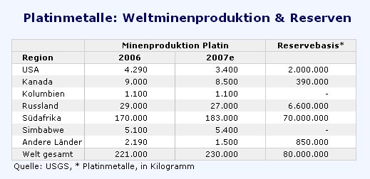 Teletrabbi Januar 4, 2004 Und glech noch ein Fund: Weit übertroffen aber wurden beide Metalle von Platin, das um über 45 Prozent auf 860 $ je Unze in der vergangenen Woche sprang. Auch wenn die Notierungen in der zweiten Wochenhälfte abbröckelten, ist kein ernsthafter Rückschlag abzusehen. Vor allem spekulative Fonds kauften Platin. Gründe waren die steigende Nachfrage nach Dieselfahrzeugen und geringer als angekündigte Produktionszuwächse in Südafrika. Das Rückschlagsrisiko sollte also auch nicht vernachlässigt werden. Wenn es irgendwann immer langsamer aufwärts geht, dann werden die Fondsmanager nervös und verkaufen und setzen damit eine kleine Abwärtsspirale in Gang. Edit: Hier noch ein interessanter Link. http://www.dw-world.de/german/0,3367,1503_...086_1_A,00.html Der Hauptabnehmer von Platin ist die Autoindustrie. Diese könnte aber wieder auf das erheblich billigere Palladium umstellen, welches momentan bei etwa 200 Dollar pro Unze steht. Dieser Umstellungsprozess dürfte voraussichtlich aber mehrere Jahre dauern die Palladium-Preise dürften bis zu dieser Umstellung jedenfalls wieder kräftig in die Höhe gehen. Diesen Beitrag teilen Link zum Beitrag