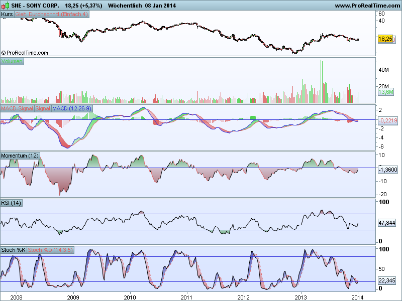 Sony kurzfrist: rein rechnische Spekulation, hier bin ich bereit eine technische Spekulation einzugehen, weil ich der Ansicht bin, dass die kurzfristigen Signale