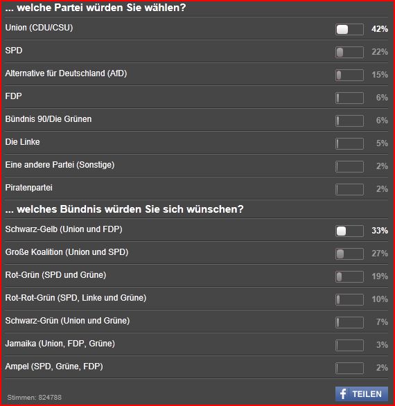 über 800.000 abgegebene Stimmen ... Quelle: BILD online (auf der Seite weit runterscrollen bis zur Umfrage)