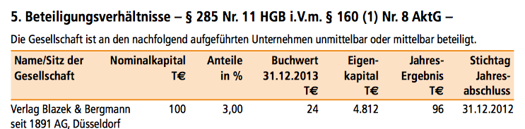 Sapine April 11, 2014 Den Effecten-Spiegel hatte ich bisher nur als Journal für Aktien auf dem Radar. Welche Rolle spielt das Verlagsgeschäft für die AG neben den ganzen Beteiligungen? Gibt es aus Deiner Sicht so etwas wie einen roten Faden bei den Beteiligungen? Diesen Beitrag teilen Link zum Beitrag