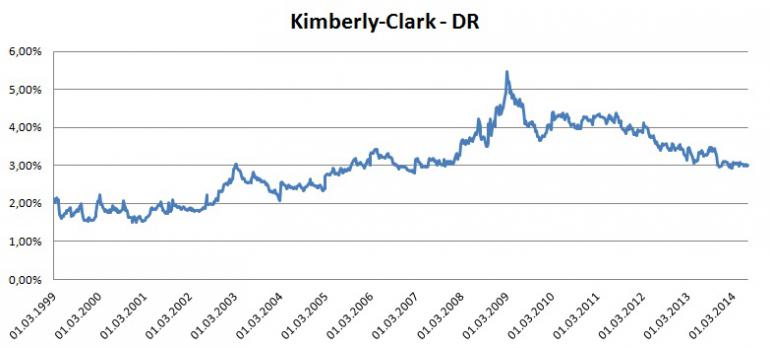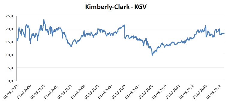 Schlaftablette Juli 8, 2014 @Sisyphus: Genau das sind meine Gedanken: Die Notenbanken werden es nicht wagen, bei den staatlichen Schuldenstaenden die Zinsen signifikant zu erhoehen. Damit werden die aktuellen Bewertungen noch eine ganze Weile normal bleiben. In was soll man sonst investieren?? @ Tutti: Ohne Kommentar, hier wie versprochen die historische Kurs- KGV- und Dividendenrenditen-Entwicklung von Kimberly-Clark. Eine Position teilen? Gerne. Werde die naechsten Tage zugreifen. Beim aktuellen Kurs ergibt sich ein KGVe2014 von 18,4 und 3 % Dividendenrendite. Diesen Beitrag teilen Link zum Beitrag