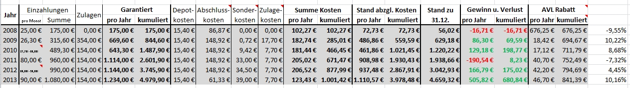 Nach 6 Jahren bist du immer noch im Verlust, da ist ja selbst eine simple VWL Anlage besser, da sie so gut wie nichts kostet. Man sieht mal wieder es geht alles über Gebühren, Zulagen hin oder her.