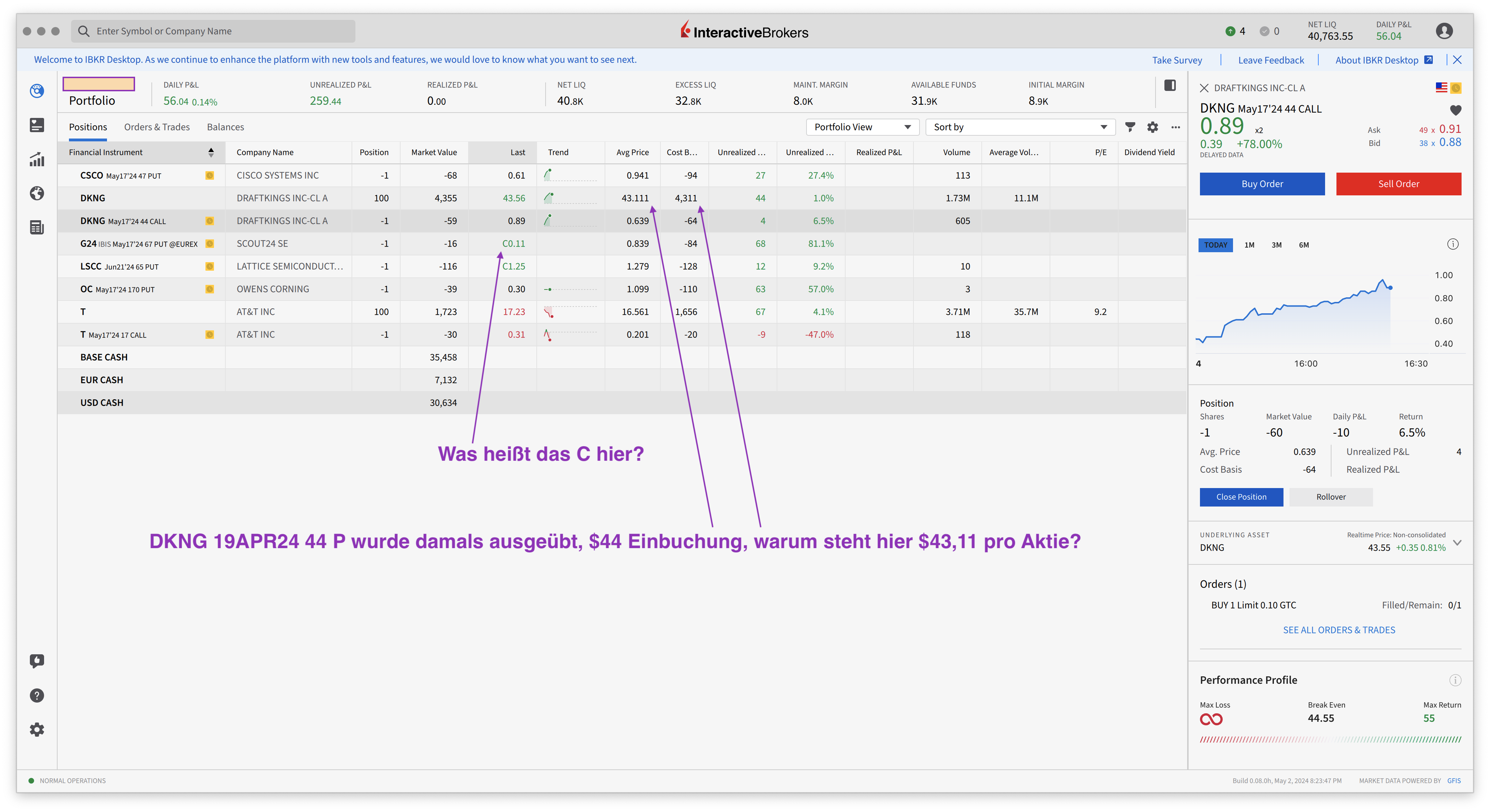 Matthias_Becker Mai 15, 2024 @corniC steht für closed, also last close, letzter Transaktionspreis. $43.11 da die Transaktionskosten auch im cost base mitgenommen werden. Diesen Beitrag teilen Link zum Beitrag