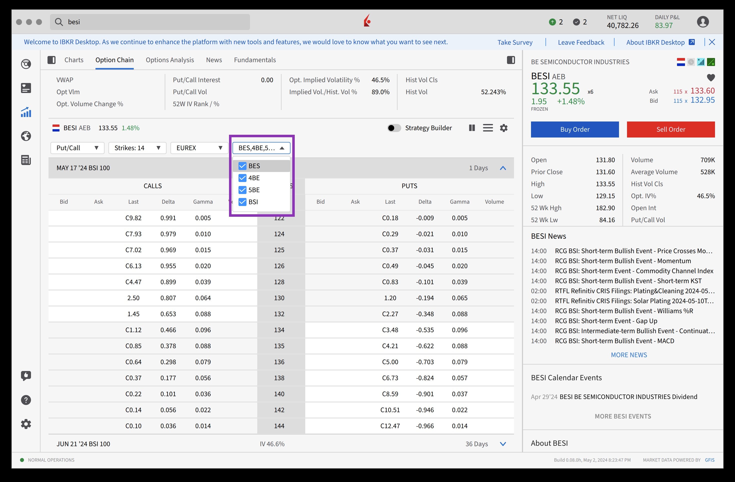 corni Mai 15, 2024 vor einer Stunde von Saek: Bei ETFs (vielleicht auch Aktien, kA) mit primärem Handelsplatz BVME werden Xetra, Gettex usw von SMART und deshalb auch z.b. von adaptive Algo Orders aus mir unverständlichen Gründen ignoriert. Interessant... naja jedenfalls kann man bestimmte Handelsplätze auswählen. Habe noch nie ETFs über IB gehandelt, müsste ich mal drauf achten wenn ich das mache. Danke für den Hinweis. Eurex Optionen - merkwürdiges Menü. Wer kann mir sagen, was die Optionen BES, 4BE, 5BE, BSI in diesem Menü bedeuten? Ich sehe das bei Eurex Optionen öfter (oder immer?), bei Optionen auf Amerikanische Aktien nie. Selbst bei Eurex selber finde ich da nichts: https://www.eurex.com/ex-en/markets/equ/equ-opt/options/BE-Semiconductor-Industries-1436438 Diesen Beitrag teilen Link zum Beitrag