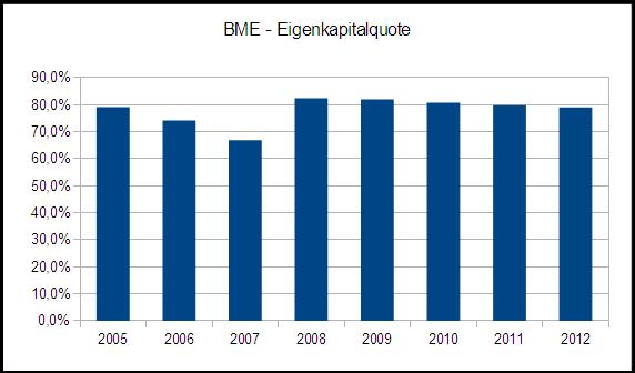 Schlaftablette Oktober 29, 2013 · bearbeitet Oktober 29, 2013 von Schlaftablette Die Eigenkapitalquote beträgt stolze 80%, bei einer Bilanzsumme von 522 Mio. € für 2012. Das Fremdkapital beträgt ca. 110 Mio. €, die Cash-Bestände belaufen sich auf ca. 150 Mio.€ Das Unternehmen ist praktisch Schuldenfrei, das Gearing damit negativ. Ich habe nicht in die Bilanz gesehen, halte die Angabe aber für äußerst unwahrscheinlich. Wieso sollte ein Börsenbetreiber eine Eigenkapitalquote von 80% haben? Das wäre totes Kapital. Die Deutsche Börse hat eine Eigenkapitalquote zwischen 2 und 3 Prozent und das reicht aus. Rein nach einem Blick auf Deine Zahlen: Die Höhe des Eigenkapitals unterscheidet sich um einen Faktor von 1.5, aber die Höhe der Bilanzsumme um einen Faktor von 50. Der Unterschied besteht also hauptsächlich darin, was in die Bilanz gezählt wird und was nicht. Die Deutsche Börse bewahrt insbesondere Wertpapiere auf (mit ihrer Tochter Clearstream), die ihr - zumindest nach der Auffassung der Käufer dieser Anleihen - nicht "gehören". Macht es Sinn, diese Wertpapiere zur Bilanz der Deutschen Börse zu zählen oder nicht? Hallo Dankenichts, erstmal danke für dein Lob. Du hast es ja schon selbst gesagt: Die Frage ist: Was zählt man in die Bilanz mit rein? In der Bilanz gibt es zwei Positionen: "Other current final assets bzw. liabitlities". Diese haben sowohl auf der Aktiva als auch auf der Passiva Seite denselben Betrag. Diese Position ist 36,059 Mrd. € schwer - bei einer Bilanzsumme 36,582 Mrd. €. (Quelle: GB 2012) Weil es sich dabei um aufbewahrte Wertpapiere handelt, für die die BME keine Zinsen zahlt oder erhält, habe ich diese mal aus der Eigenkapitalberechnung rausgenommen. Es bleibt ein Betrag von rund und roh 522 Mio. Bei einem Eigenkapital von 412 Mio. € ergibt sich eben die von mir zitierte EKQ von ~ 80%. Hier nochmal zur Verdeutlichung die Bilanz aus dem GB 2012: Wo wir schon dabei sind: Die Aktie hat sich prächtig entwickelt und ist auf dem höchsten Stand seit Ausbruch der Finanzkrise vor ca. 5 Jahren. Bin seid Dezember 2012 investiert und die Rendite beträgt inkl. Dividende ca. 65%. Hier mal der Chart: Aus dem Quartalsbericht 2013 Q2 geht übrigens hervor, dass der Quartalsgewinn zum zweiten mal in Folge nicht mehr fällt, sondern steigt: Diesen Beitrag teilen Link zum Beitrag