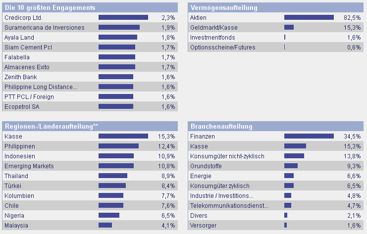 ghost_69 Mai 11, 2013 DWS Invest Emerging Markets Satellites LC Fondsporträt Anlageziel ist eine überdurchschnittliche Rendite. Mindestens 70% des Fondsvermögens werden in Aktien, Aktienzertifikaten, Partizipations- und Genussscheinen, Wandelanleihen und Optionsscheinen auf Aktien von Unternehmen, die ihren Sitz in einem Schwellenland haben, angelegt. Hierzu gehören insbesondere, aber nicht ausschließlich, die Länder Ägypten, Argentinien, Bangladesch, Chile, Indonesien, Kasachstan, Kenia, Kolumbien, Marokko, Nigeria, Pakistan, Peru, Philippinen, Rumänien, Sri Lanka, Thailand, Türkei, Ukraine und Vietnam. Basisdaten WKN / ISIN: DWS054 / LU0616852603 Fondsgesellschaft DWS Investment S.A. Fondsmanager DWS Team Anlageregion Emerging Markets Fondskategorie Aktienfonds Asset-Schwerpunkt All Cap Fonds-Benchmark n.v. Risikoklasse 4 Risiko-Ertrags-Profil (SRRI) 7 Fondsvolumen 31,10 Mio. EUR (alle Tranchen) Auflegungsdatum 01.03.2012 Ertragsverwendung thesaurierend Steuerstatus transparent Geschäftsjahr 1.1. - 31.12. Kauf / Verkauf Ja / Ja Vermögenswirksame Leistungen nicht möglich Kosten und Gebühren Ausgabeaufschlag (effektiv) 5,26% (4,99%) All-in-Fee 1,50% Wachstumschancen der neuen Generation Neue Dynamik Brasilien, Russland, Indien, China – diese auch wirtschaftlich großen Namen werden immer noch als Emerging Markets geführt. Gleiches gilt für hoch entwickelte Volkswirtschaften wie Südkorea und Taiwan. Gemeinsam ist diesen großen und kleineren Ländern eine im Vergleich mit den Industrieländern höhere wirtschaftliche Dynamik. Aber: Das hohe Wachstum dürfte früher oder später an seine Grenzen stoßen – auch wenn der Aufholprozess zunächst noch anhalten sollte. Längerfristig überdurchschnittlich große Wachstumschancen sind nach Einschätzung der DWS-Experten woanders zu suchen: In Schwellenländern der neuen Generation, die als Satelliten um die heute noch im Mittelpunkt stehenden Emerging Markets kreisen. Breit gestreut – „Sonstige“ und „Frontier Markets“ Das Fondsmanagement hat die kleineren Schwellenlänger im Visier: Das sind einerseits Länder, die in dem repräsentativen MSCI Emerging Markets-Index neben den „großen Acht“ – China, Brasilien, Russland, Indien, Taiwan, Südkorea, Mexiko und Südafrika vereinen derzeit rund 85 Prozent des weltweiten Emerging-Markets-Aktienkapitals – oft unter „Sonstige“ subsummiert werden. Dazu zählen z.B. Chile, Türkei, Philippinen, Indonesien und Thailand. Andererseits setzt es auf wenig entwickelte und schwer zugängliche Märkte, wie sie im MSCI Frontier-Markets-Index zusammengefasst sind. Dazu gehören u.a. Nigeria, Argentinien, Bangladesh, Pakistan und Kasachstan. Frontier Markets gelten als Emerging Markets der Zukunft. Angemessen bewertet Nach Einschätzung des Fondsmanagements bieten die „Satelliten“ die Chance eines überdurchschnittlich hohen, aufgrund des relativ niedrigeren Entwicklungsstandes strukturellen Wirtschaftswachstums. Das könnte sich langfristig auf den Aktienmärkten widerspiegeln. Allerdings muss stets mit – auch stärkeren – Rückschlägen gerechnet werden, denn die politischen Risiken sind deutlich höher als in den Industrieländern. Die Aktienbewertungen sind nach Ansicht der DWS-Experten derzeit angemessen, und die Volatilität bewegt sich auf dem Niveau der etablierten Emerging Markets. Stock Picking mit Expertise vor Ort Insbesondere auf weniger entwickelten und nicht im Fokus von Analysten und Investoren stehenden Märkten sollte aktives Fondsmanagement in Form von Stock Picking ein Erfolg versprechender Investmentansatz sein. Voraussetzung: Vor Ort ist Expertise zur Identifikation der in Frage kommenden Unternehmen vorhanden. Das Fondsmanagement kann auf Experten in allen relevanten Regionen zurückgreifen. Doppelter Diversifikationsvorteil Der Diversifikationsvorteil dokumentiert sich in der breiten Streuung im Fonds selbst; das Portfolio besteht aus 60 bis 90 Aktien zahlreicher Branchen in Asien, Afrika, Ost- und Mitteleuropa sowie Lateinamerika. Der Fonds könnte darüber hinaus ein geeignetes Instrument sein, um ein Engagement in Schwellenländern der ersten Generation, vor allem den BRIC-Staaten, zu ergänzen und weiter zu diversifizieren: Die „Satelliten-Börsen“ wiesen in der Vergangenheit nicht nur eine geringe Abhängigkeit untereinander, sondern auch von den etablierten Emerging Markets auf. Dadurch könnten sich nach Einschätzung des Fondsmanagements größere Chancen bei vergleichbarem Risiko ergeben. Hier das Fachsheet der DWS: DWS Invest Emerging Markets Satallites.pdf Wobei in den Schwellenländern von morgen gibt es auch noch andere: Wobei hier wohl die Auswahl der Länder entscheident ist, aber nur welche sind wichtig für die Zukunft ? Also die Asiatischen Märkte finde ich am interessantesten, da gibt es auch andere gute Fonds, die sich allein auf Asien fokussieren, auch die Länder aus Latin America finde ich hoch interessant, aber afrikanische Länder sowie den Nahen Osten möchte ich nicht so gerne im Depot haben, dieser Fonds mischt alle diese Regionen zusammen, die anderen beziehen sich teilweise nur auf eine Region. Danke an Richy für den Hinweis in unserer Fondsmeisterschaft !!! Ghost_69 <img src='https://www.wertpapier-forum.de/public/style_emoticons/<#EMO_DIR#>/whistling.gif' class='bbc_emoticon' alt=':-' /> Diesen Beitrag teilen Link zum Beitrag