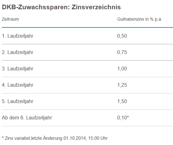 Kolle Oktober 3, 2014 Der Vollstädigkeit halber: Zinssenkung Basiszins auf 0,7% für neue Verträge. Rendite 20 Jahre knapp 2% Zinsen für Festgeld und Zuwachssparen wurden ebenfalls gesenkt. Bittere Realität für Sparer, die DKB liegt damit im Mittelfeld deutscher Banken. Bin mal gespannt wie lange es die überdurchschnittlichen 0,9 % fürs Visakonto noch gibt. Glückwunsch an alle, die ihren Sparplan ( bzw. Sparpläne ) noch bis Anfang Juni abgeschlossen haben. Dazu noch die äußerst flexiblen Gestaltungsmöglichkeiten wie z.B. Vorauszahlungen, die zusätzlich ein Quasifestgeld zu 1,55 % p.a. plus späteren Bonus ermöglichen. Solche aus heutiger Sicht Traumkonditionen wird es lange Zeit nicht wieder geben. Diesen Beitrag teilen Link zum Beitrag