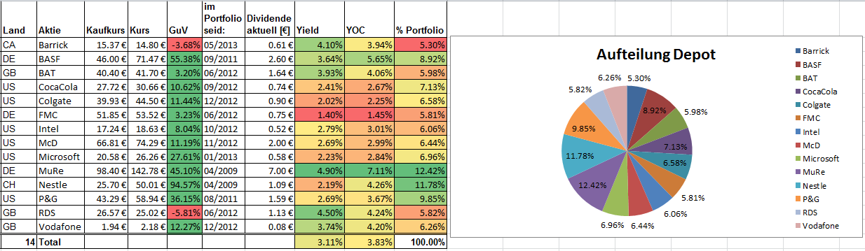 Dividendensau Juni 13, 2013 · bearbeitet Juni 13, 2013 von Dividendensau Hi Seppel! Tolles Depot, hab auch fast alles was du hast! Alter und Anlagehorizont decken sich auch. Ich glaub wir werden noch viel Spaß haben! Diesen Beitrag teilen Link zum Beitrag