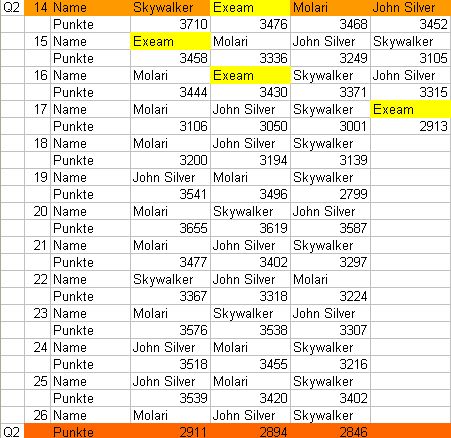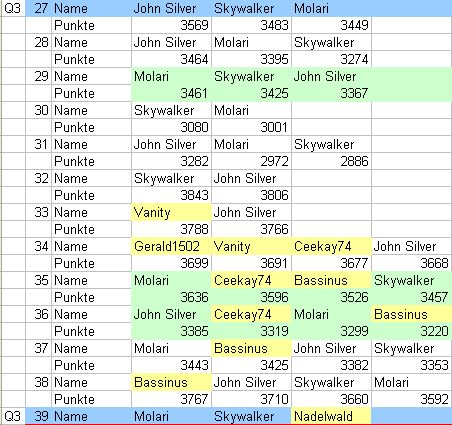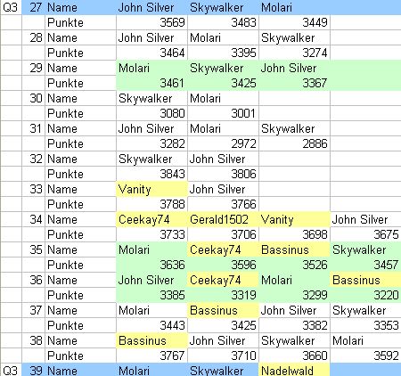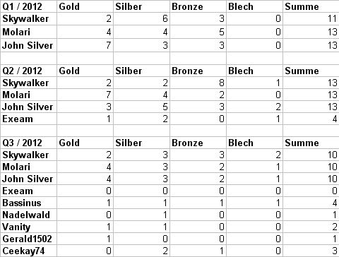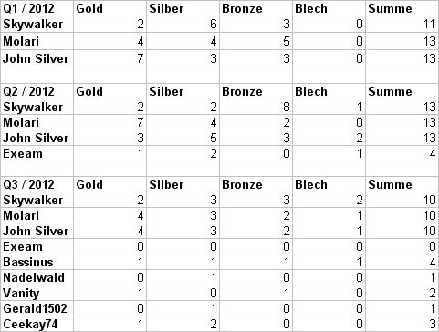 John Silver Juli 7, 2013 Dank an die aufmerksamen Augen von Vanity, der trotz seines Namens nicht so eitel ist und eine Rückstufung von Platz 2 auf 3 in der 34 KW aufsich nimmt und mir den Fehler gemeldet hat. Vorbildlich! Hier die korrigierten Tabellen: Diesen Beitrag teilen Link zum Beitrag