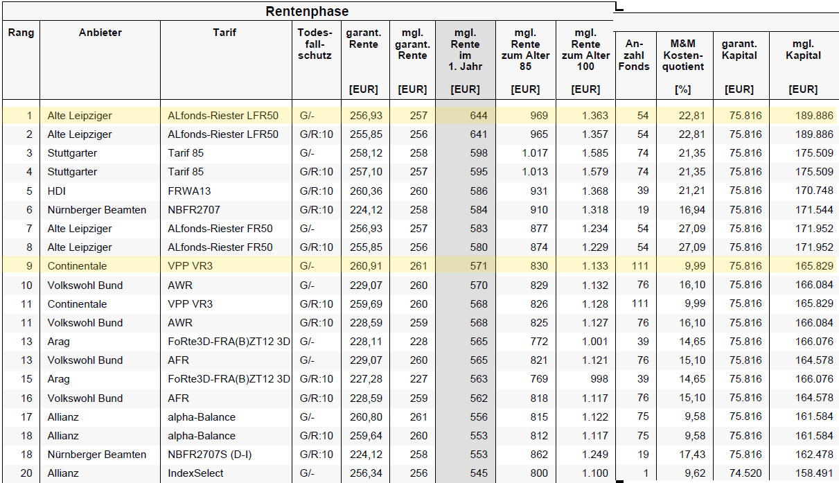 Die Continentale hat noch eine weitere Fondspolice, dort nicht gelistet, die zu den flexibelsten Produkten am Markt gehört. Allerdings ist das im Riester Kontext reichlich egal, da eh nur Flexibilität im Rahmen der gesetzlichen Rahmenbedingungen möglich ist.