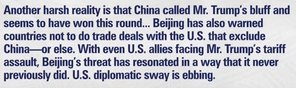 reko April 24, 2025 · bearbeitet April 24, 2025 von reko "Trump chickend out .. is big news in China .. donald trump has decided to surrender to china without china giving donald trump anything in return absolutely nothing .. because donald trump is publicly losing his trade war and publicly surrendering to china the stock market gained back some of its massive trump losses today .. on monday donald trump met with the ceos of the big retail stores walmart target home depot who told him that they could be two weeks away from empty shelves" Video 2025/04/24: Lawrence: China sees 'world's biggest clown' Trump as most economically incoherent president ever Video 2024/04/23: Target, Walmart CEOs give Trump blunt warning about rising prices, empty shelves Die US-Währung verliert ihre Dominanz. Chinas Währung breitet sich aus. 7 ASEAN-Länder übernehmen Chinas Zahlungssystem. 2025/04/07 Werden in Asien die Karten im Handelspoker neu gemischt? Lochner: "Es gibt gerade den sell america trade". Diesen Beitrag teilen Link zum Beitrag