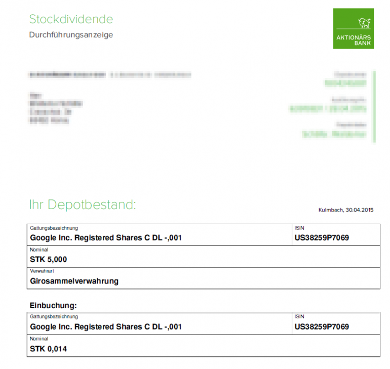 hund555 Mai 8, 2015 Ich habe Anfang 2015 Google-C Aktien gekauft und habe Ende April Stockdividende bekommen. Ich dachte Google zahlt keine (Stock)dividenden ?! Die kann ich auch nicht verkaufen, da sie nur 0,0x Stück sind - was bring mir das, ich werde vielleicht nie auf eine eine ganze Aktie kommen. Diesen Beitrag teilen Link zum Beitrag