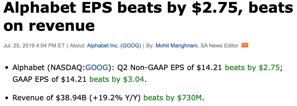 Toni Juli 25, 2019 · bearbeitet Juli 25, 2019 von Toni >> "With revenues of $38.9 billion, up 19% versus the second quarter of 2018 and up 22% on a constant currency basis, we’re delivering strong growth," said Ruth Porat, Chief Financial Officer of Alphabet and Google. << Investor Relations Diesen Beitrag teilen Link zum Beitrag
