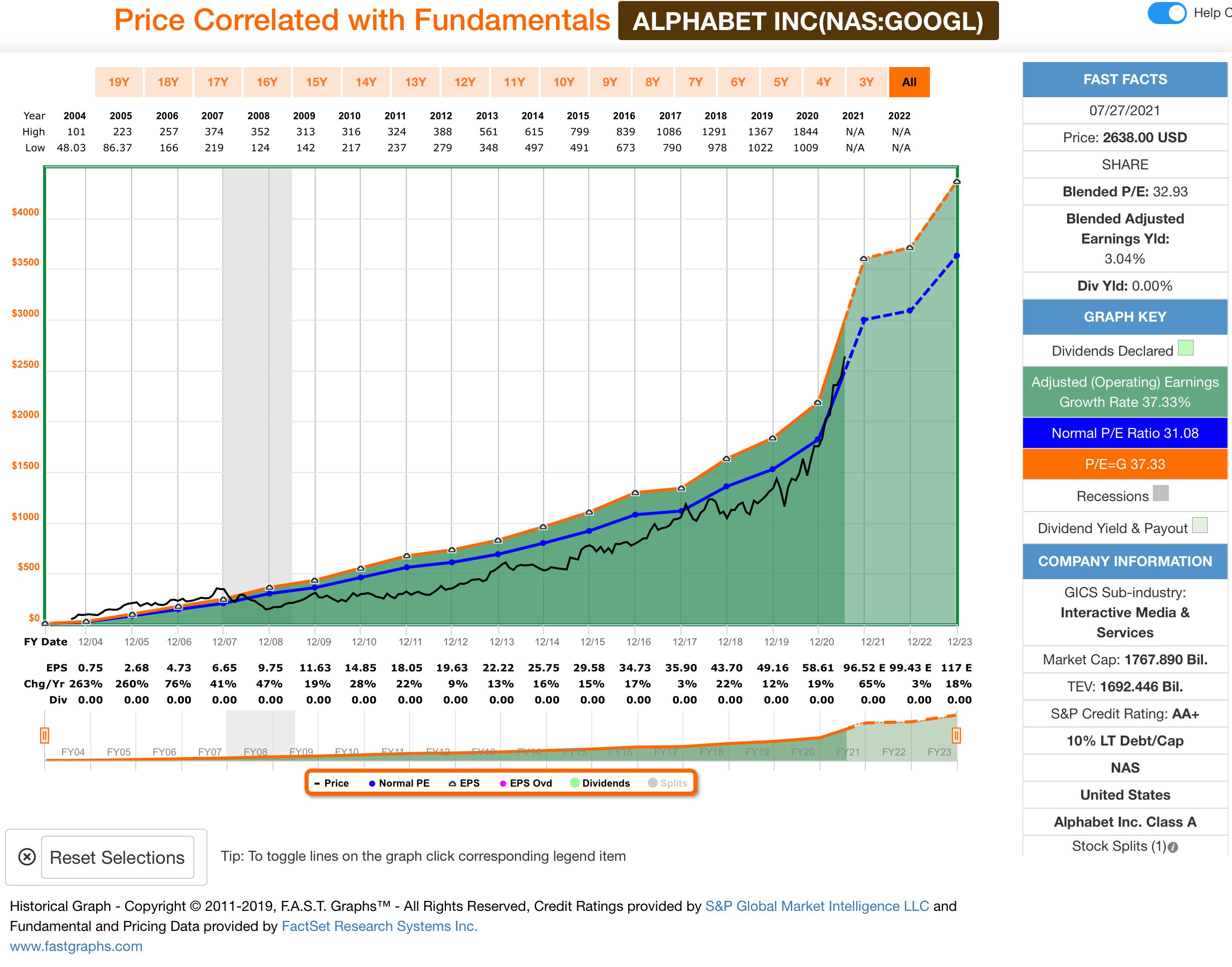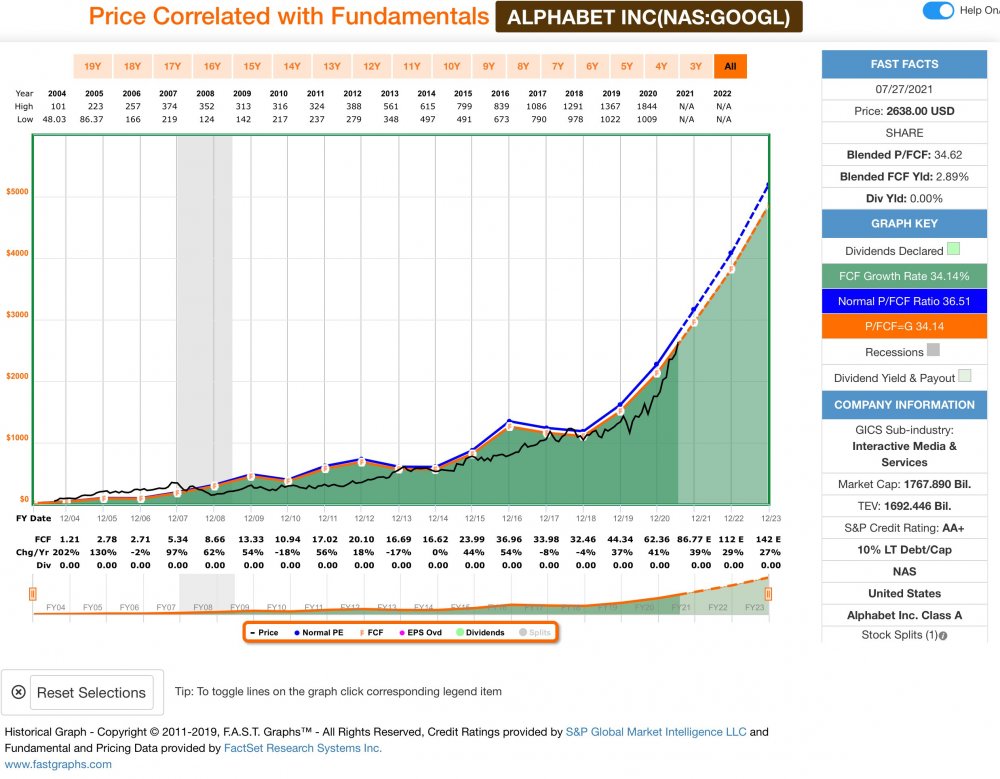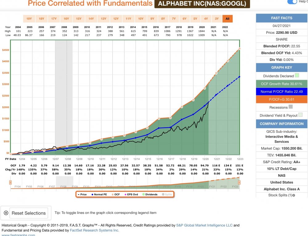 Toni Juli 28, 2021 · bearbeitet Juli 28, 2021 von Toni vor 17 Stunden von MGAT: Brutal, wie bei einer so großen Firma noch diese Wachstumsgrößen erreicht werden können. Ich denke FAAANG wird noch lange ein Phänomen bleiben, und nach einem eventuellen Untergang mit Sicherheit in die Geschichtsbücher eingehen :). Sehe ich auch so. Bewertungs-Update: FASTgraphs hat seine Grafik angepasst, demnach ist die Aktie jetzt ungefähr fair bewertet und könnte sich in den nächsten zweieinhalb Jahren noch mal verdoppeln, wenn es nach P/FCF geht: Nach adjusted operating earnings sieht es nicht ganz so optimistisch aus: Diesen Beitrag teilen Link zum Beitrag