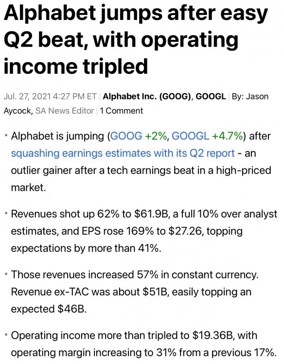 Toni Juli 27, 2021 · bearbeitet Juli 27, 2021 von Toni Quartalszahlen: https://abc.xyz/investor/static/pdf/2021Q2_alphabet_earnings_release.pdf Da sage ich nur: Wow! Diesen Beitrag teilen Link zum Beitrag
